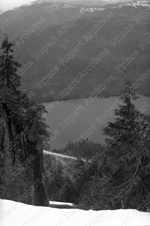 Scope & Content: Photograph depicts a view of Prudhomme Lake from an overlooking mountain.