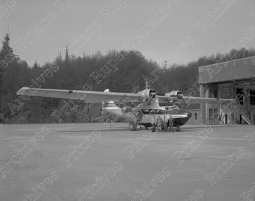 Scope & Content: Item consists of four men standing in front of an airplane belonging to Queen Charlotte Airline. The man on the left is Dr. Bill Kergin. An airplane hanger can be seen in the background.