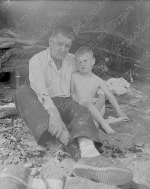 Scope & Content: Item consists of a man and a child at a beach at Tremayne Bay for a picnic.