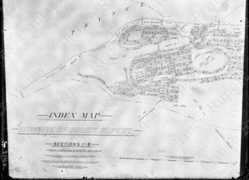 Scope & Content: Item consists of the west side an index map of sections 1 to 9 of Prince Prince Rupert, B.C. The scale of the map is 400 feet to one inch.