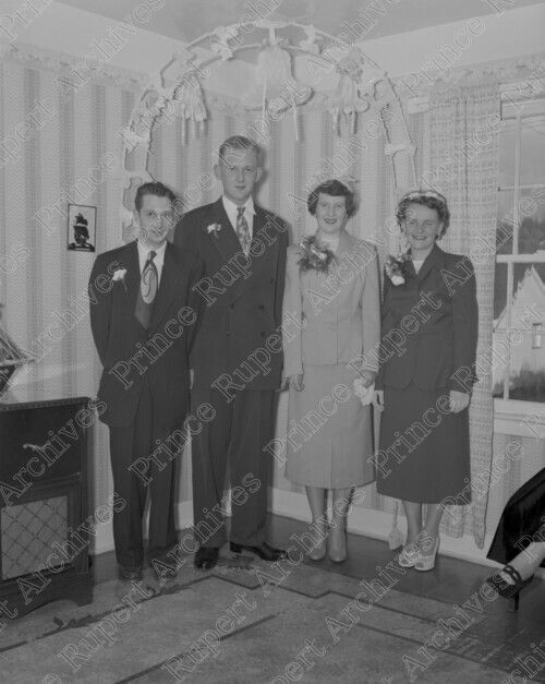 Scope & Content: Item consists of two men and two women at the wedding of Ken Wrathall and Mary Davidson.