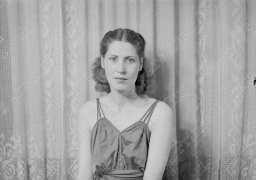 Scope & Content: Item consists of a woman posing for a photograph at the wedding of Jack Wrathall and Lorna Christy.