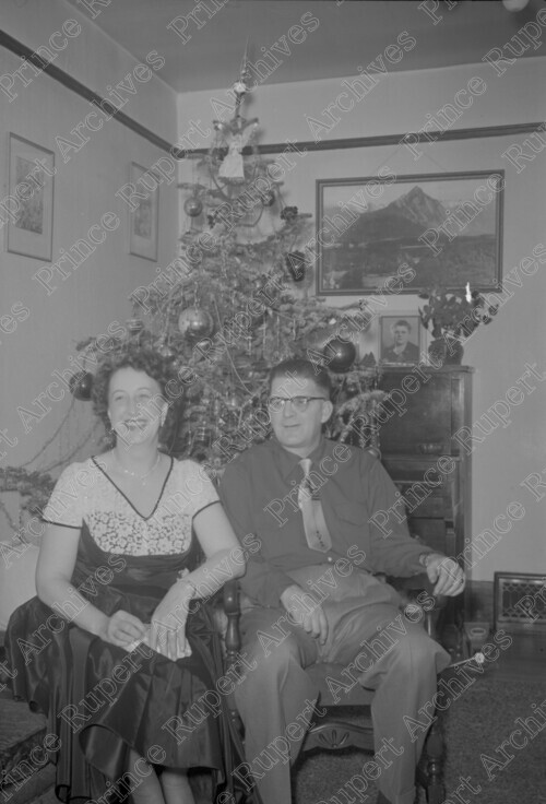 Scope & Content: Item consists of Jack Wrathall and an unidentified woman sitting in front of a Christmas tree.