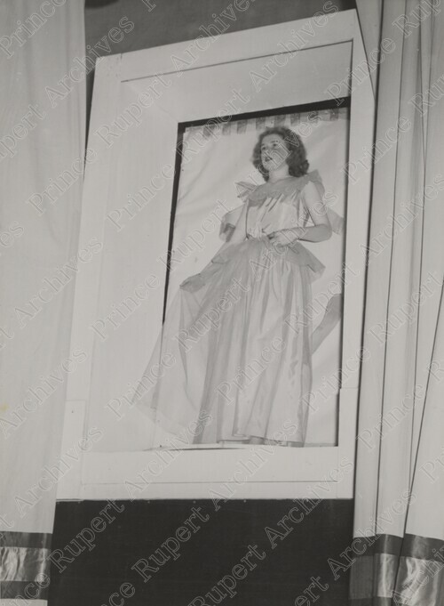 Scope & Content: Item consists of a young woman participating in a play held by Job's Daughters and the Sea Cadets at the civic centre. Stamped annotation on verso reads: "Photo by Jack Wrathall Prince Rupert, B. C."