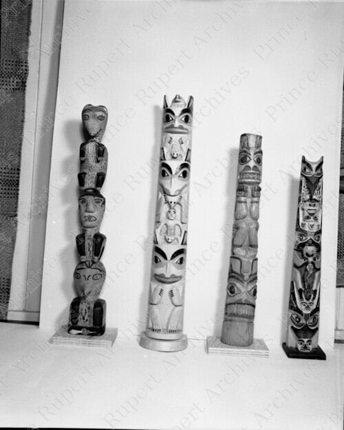 Scope & Content: Item consists of four miniature totem poles on display at the Museum of Northern British Columbia.