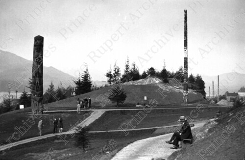 Title: People and Totem Poles in CNR Park in Prince Rupert, B.C. in 1930