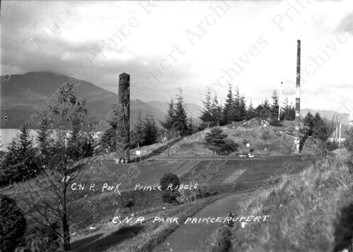 Scope & Content: Item consists of a view of CNR Park including two totem poles. Handwritten annotation on recto reads: "C.N.R. Park Prince Rupert. C.N.R. Park Prince Rupert."
