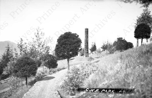 Scope & Content: Item consists of a view of CNR Park including two totem poles. Handwritten annotation on recto reads: "C.N.R. Park 24."