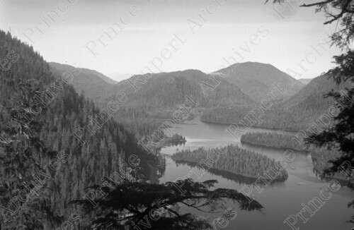 Scope & Content: Item consists of a view of Prudhomme Lake from a Mountain top.