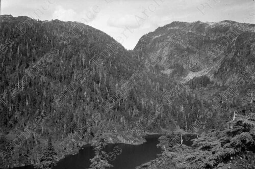 Scope & Content: Item consists of a view Prudhomme Lake from a Mountain top.