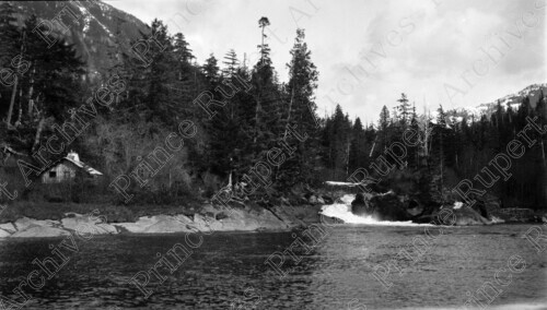 Scope & Content: Item consists of the Khtada River flowing into the Skeena River at the point of Khtada Falls.