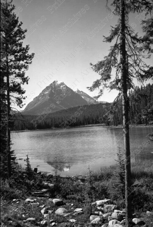 Scope & Content: Item consists of a view of Jasper National Park including a lake and mountains.