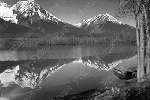 Scope & Content: Item consists of a view of Lake Kathlyn near Smithers with a wharf at the edge of the lake. The Hudson Bay Mountain can be seen in the background.
