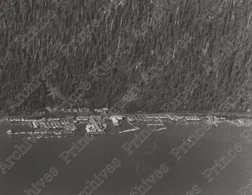 Scope & Content: Item consists of an aerial view of Sunnyside Cannery including cannery buildings, docks and employee housing. Stamped annotation on verso reads: "Photo by Jack Wrathall Prince Rupert, B. C." Handwritten annotation on verso reads: "NO-1522 Sunnyside Cannery. 1949."