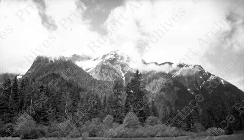 Scope & Content: Item consists of a view of mountains from the Khyex River. Handwritten annotation on recto of copy 2 reads: "Trip up the Khyax River. 35 Miles From Pr. Rupert. May 24 - 1945." Stamped annotation on verso of copy 2 reads: "Photo by Jack Wrathall Prince Rupert, B. C."