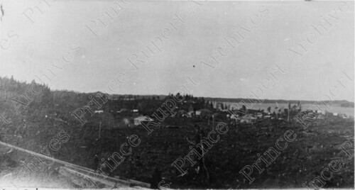 Scope & Content: Item consists of a view of houses on 3rd Avenue, Fulton Street and 5th Avenue. Handwritten annotation on recto reads: "1908 - Building 5th Ave. & Fulton St. 3rd Ave. & Fulton St. Pr. Rupert." Stamped annotation on verso reads: "Photo by Jack Wrathall Prince Rupert, B. C."
