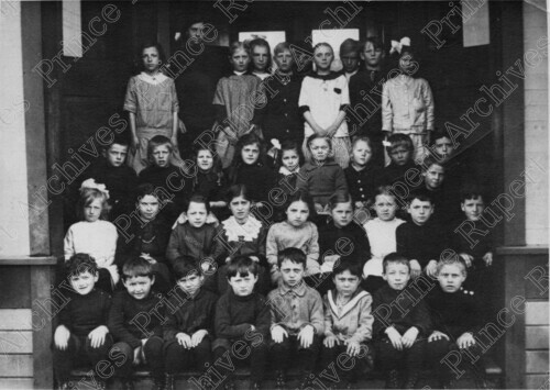 Title: Class Gathered on the Front Steps of King Edward School at Prince Rupert, B.C. in 1916