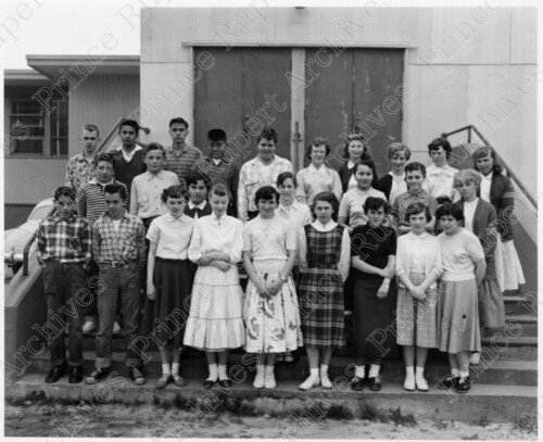 Scope & Content: Item consists of a class of Booth Memorial School students standing on the steps of the school on 6th Avenue East and Hays Cove Circle. Stamped annotation on verso reads: "Photo by Jack Wrathall Prince Rupert, B. C."