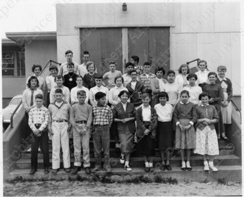 Scope & Content: Item consists of a class of Booth Memorial School students standing on the steps of the School on 6th Avenue East and Hays Cove Circle. Stamped annotation on verso reads: "Photo by Jack Wrathall Prince Rupert, B. C."