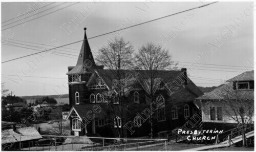 Scope & Content: Item consists of a view of the First Presbyterian Church on 4th Avenue East. Handwritten annotation on verso of copies 1 and 2 reads: "1954." Stamped annotation on verso of copy 2 reads: "Photo by Jack Wrathall Prince Rupert, B. C."