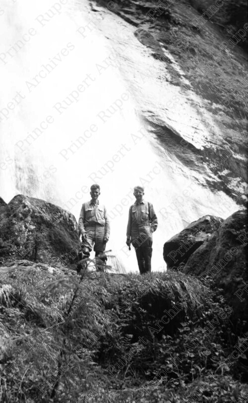 Title: George Attrill and Jack Wrathall at Khyex River, B.C. in 1945