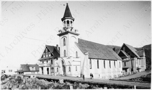 Title: Annunciation Catholic Church, Catholic School, Catholic Manse and First United Church at Prince Rupert, B.C.
