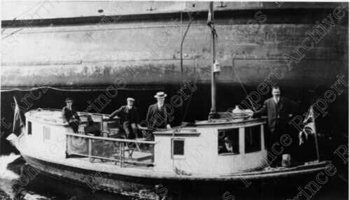 Scope & Content: Item consists of a view of four men and a young boy standing on George Frizzell's boat "Laura F." Handwritten annotation on recto reads: "Laura F. Geo. Frizzell's Boat." Stamped annotation on verso reads: "Photo by Jack Wrathall Prince Rupert, B. C."