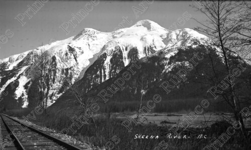 Scope & Content: Item consists of a view from CN Railway tracks of the Skeena River west of Kwinitsa. Mountains can be seen on the other side of the river. Handwritten annotation on recto of copies 1 and 2 reads: "Skeena River B.C." Handwritten annotation on recto of copy 2 reads: "Skeena River. West of Kwinitsa. 1945." Stamped annotation on verso of copy 2 reads: "Photo by Jack Wrathall Prince Rupert, B. C."