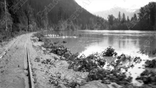 Scope & Content: Item consists of CN Railway tracks flooded after Skeena River flood.