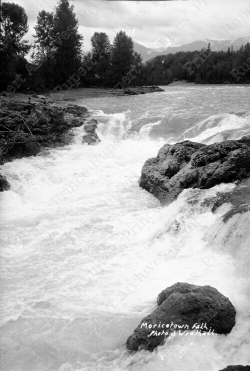 Scope & Content: Item consists of a waterfall on the Bulkley River Canyon near Moricetown. Handwritten annotation on recto of copy 1 reads: "Moricetown Fall. Photo J. Wrathall." Handwritten annotation on recto of copies 2 and 3 reads: "Bulkley River. Morsetown [sic]. 1960." Stamped annotation on verso of copies 2 and 3 reads: "Photo by Jack Wrathall Prince Rupert, B. C."