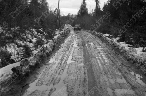 Scope & Content: Item consists of a car on a dirt road on Kaien Island.