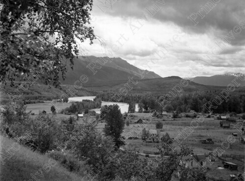 Scope & Content: Item consists of an overhead view of Hazelton including homes and a river. Mountains can be seen in the background.