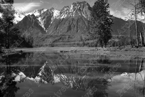 Scope & Content: Item consists of a view of Roche de Boule Mountains taken from the slough near Hazelton, B.C.