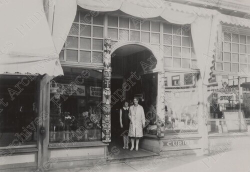 Title: Netta Clark and Another Woman at Morte Craig's Curio Store at Prince Rupert, B.C. in 1930