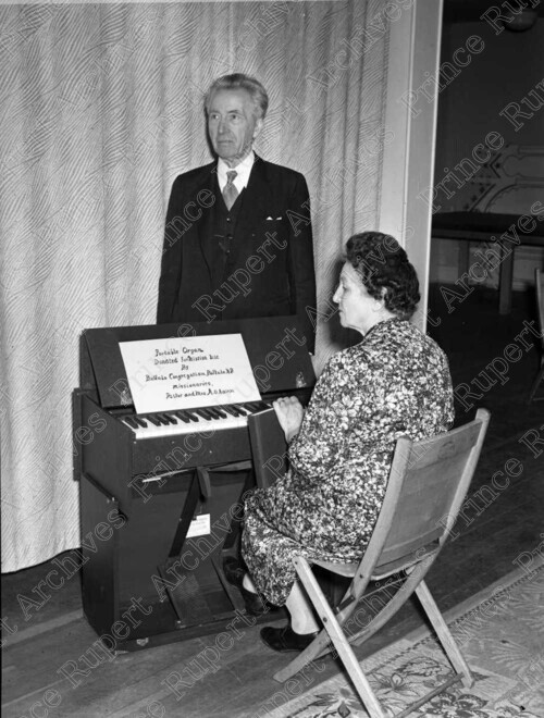Title: Lutheran Pastor and Mrs. A.O. Aason With a Donated Portable Organ in Prince Rupert, B.C. in 1946