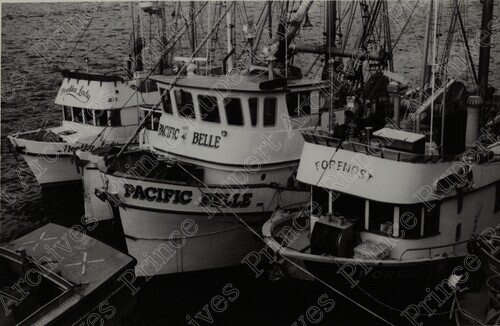 Scope & Content: Item consists of fishing boats in a body of water. The boats pictured include the "Nootka Lady," "Pacific Belle" and "Foremost." Handwritten annotation on recto of copies 1 and 2 reads: "Pr. Rupert." Stamped annotation on verso of copy 2 reads: "Photo by Jack Wrathall Prince Rupert, B. C."