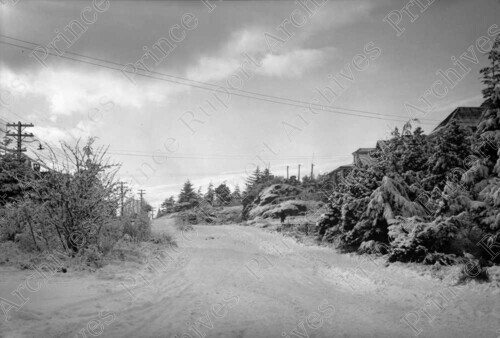 Title: Winter Scene of Homes on 5th Avenue West in Prince Rupert, B.C. in 1935