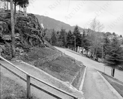Scope & Content: Item consists of Gibson's Walk in Service Park on Fulton Street. Gibson's Walk was named after B.C. Provincial Police Chief Clerk Robert Gibson. Handwritten annotation on recto of copy 2 reads: "Fulton St. Cinder Path to 4th. Ave. 1960." Stamped annotation on verso of copy 2 reads: "Photo by Jack Wrathall Prince Rupert, B. C."