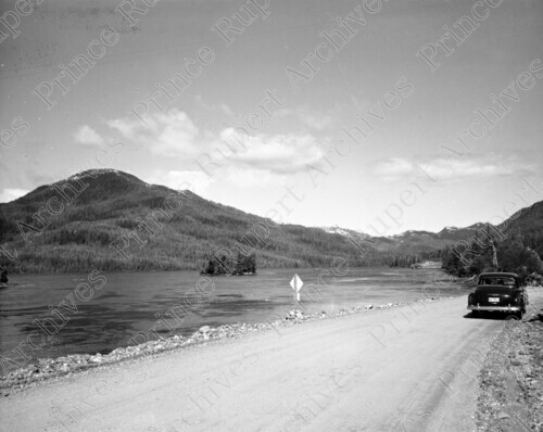 Scope & Content: Item consists of a view of a road next to Wainwright Basin south of Prince Rupert, B.C. A car can be seen on the side of the road.