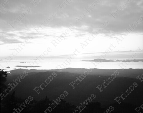 Scope & Content: Item consists of a view of a Sunset from Mount Morse showing islands to the west.