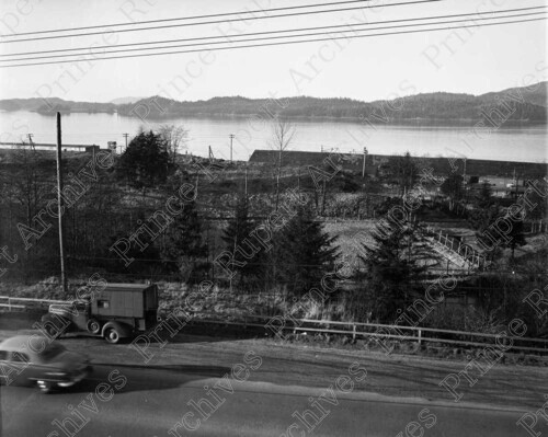 Title: 2nd Avenue, CN Park and the Harbour at Prince Rupert, B.C. in 1952