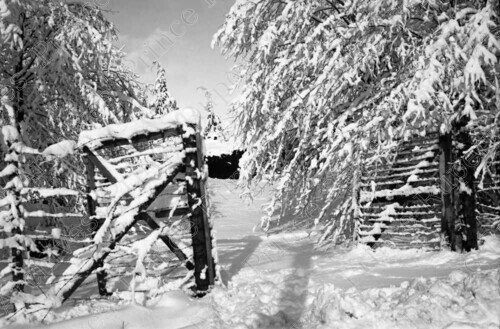 Scope & Content: Item consists of a fence and gate at McClymont Park covered in snow.