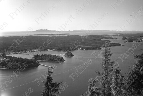 Scope & Content: Item consists of an overhead of the Prince Rupert Harbour, Dodge Cove and Digby Island from Mount Oldfield.