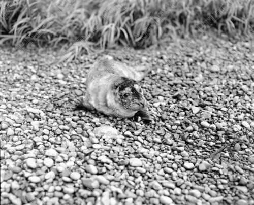 Title: Baby Seal Sitting on Rocks at Miller Bay, B.C. 1968