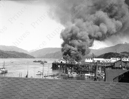 Title: Boat on Fire at Home Oil Co. at Prince Rupert on May 23, 1947