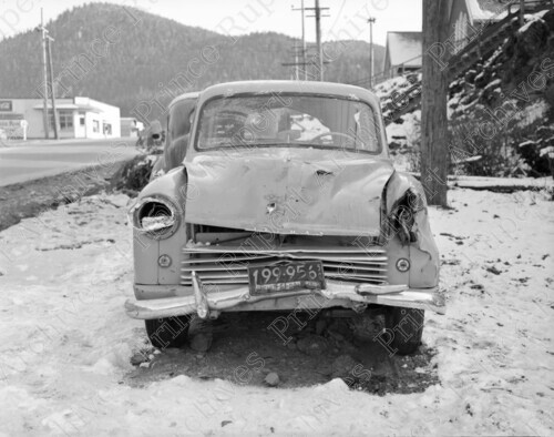 Title: Wrecked Car on McBride Street at Prince Rupert, B.C. in 1950