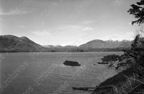 Scope & Content: Item consists of a view of the water and mountains from the highway to Port Edward.
