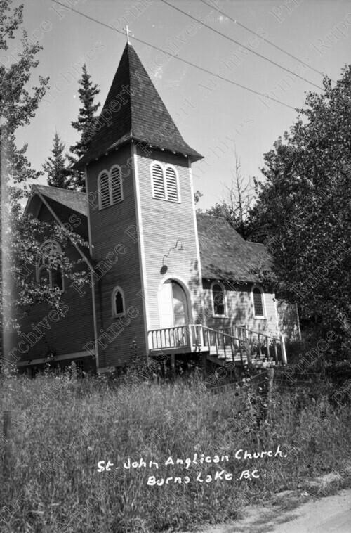 Scope & Content: Item consists of a view of the exterior of St. John's Anglican Church at Burns Lake. Handwritten annotation on recto of copy 1 reads: "St. John Anglican Church. Burns Lake, B.C." Handwritten annotation on recto of copy 3 reads: "St. John Anglican Church. Burns Lake, B.C. 1948." Stamped annotation on verso of copy 3 reads: "Photo by Jack Wrathall Prince Rupert, B. C."