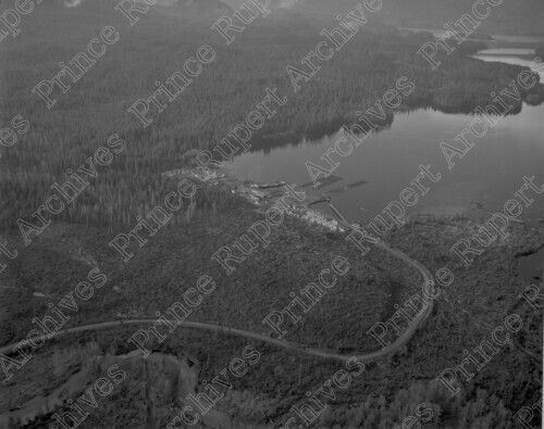 Scope & Content: Item consists of an aerial view of Kelly Logging Co. camp at Juskatla on Haida Gwaii. The view includes nearby forests and water. Handwritten annotation on recto of copy 2 reads: "Juskatla - Q. Ch. Isl. Kelley [sic] Logging Co. 1950." Stamped annotation on verso of copy 2 reads: "Photo by Jack Wrathall Prince Rupert, B. C."