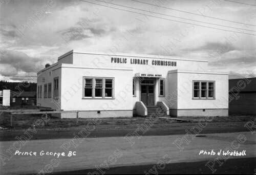 Scope & Content: Item consists of the Public Library Commission building. Handwritten annotation on recto of copies 1 and 2 reads: "Prince George BC. Photo J Wrathall." Handwritten annotation on recto of copy 2 reads: "Prince George, B.C. 1946." Stamped annotation on verso of copy 2 reads: "Photo by Jack Wrathall Prince Rupert, B. C."